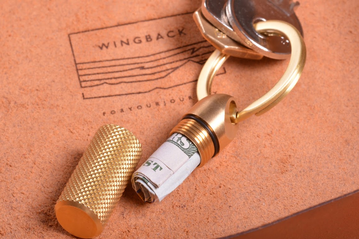 The Wingback Key Cache on Kickstarter is hermetically sealed with a silicone washer to keep its contents dry and each one is designed and manufactured to aerospace standards in the UK, with all material having been sourced from Europe. It is perfect for storing an emergency banknote with a little space to spare for a message with your vital details in case of losing your wallet or emergency so all contemporary men will benefit from having this as part of their EDC line up.