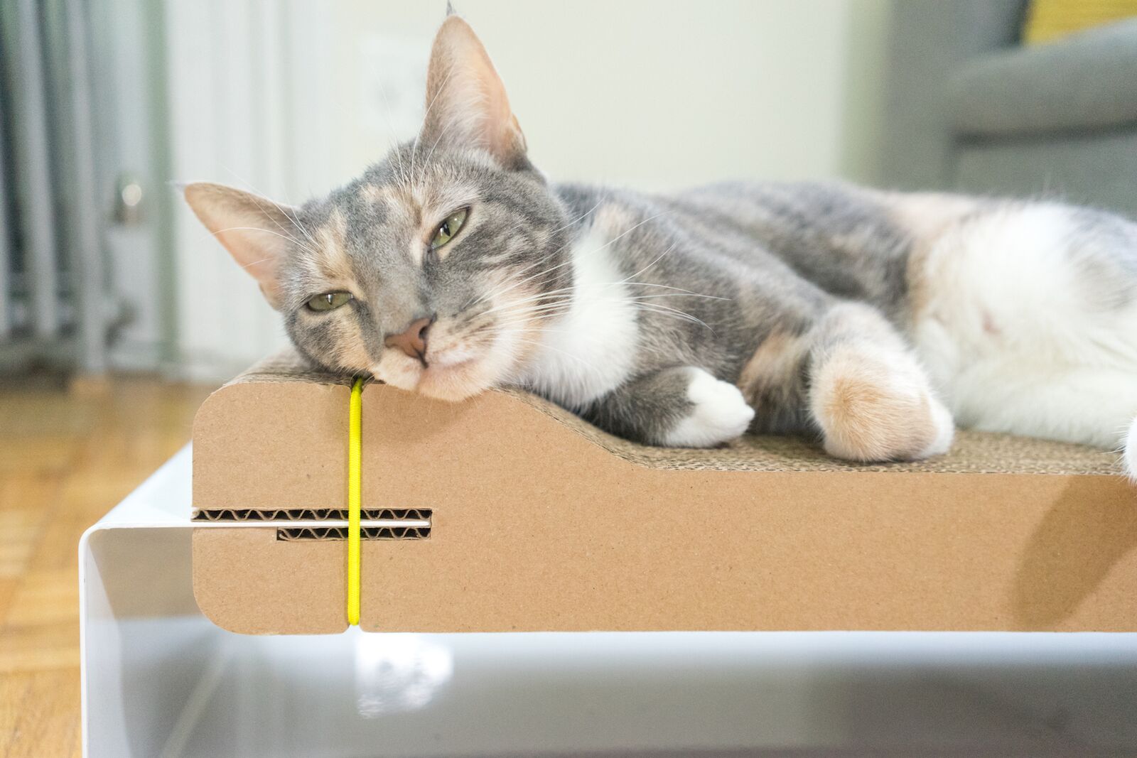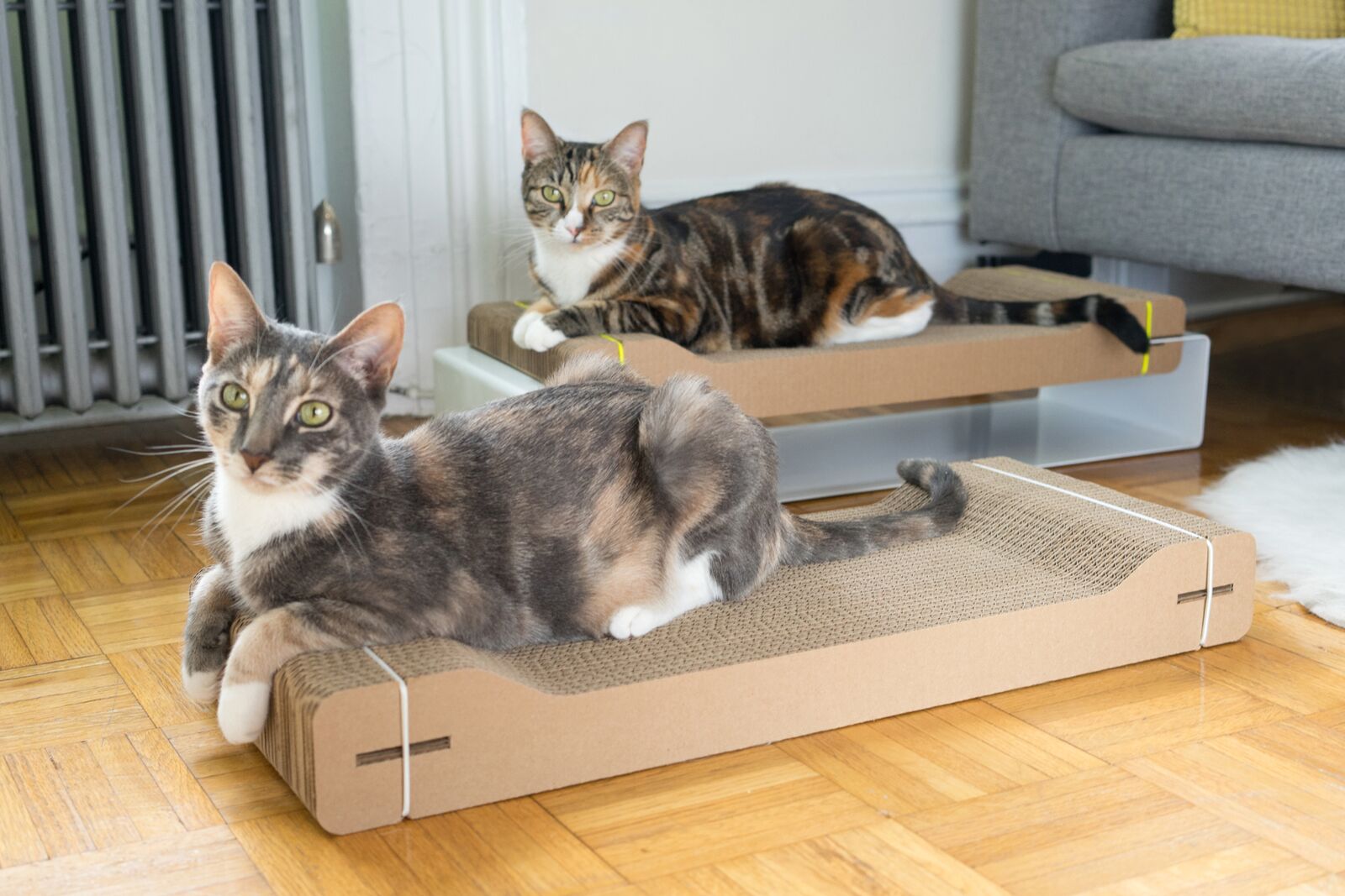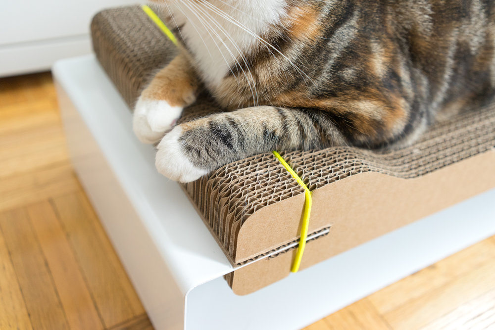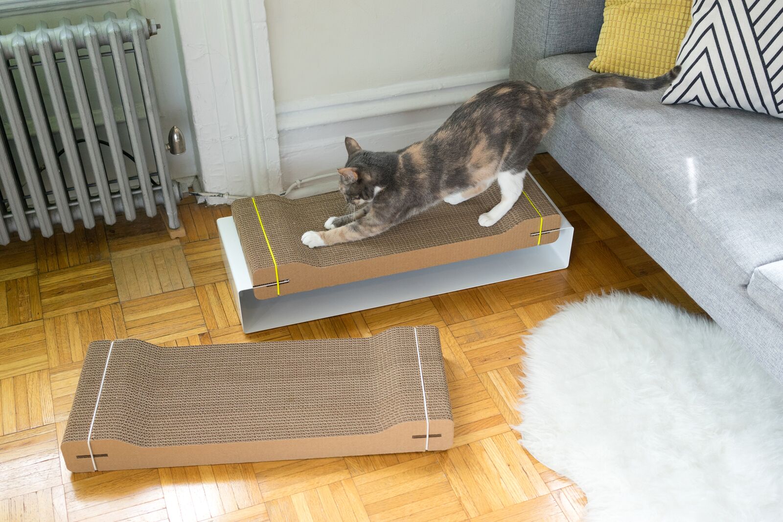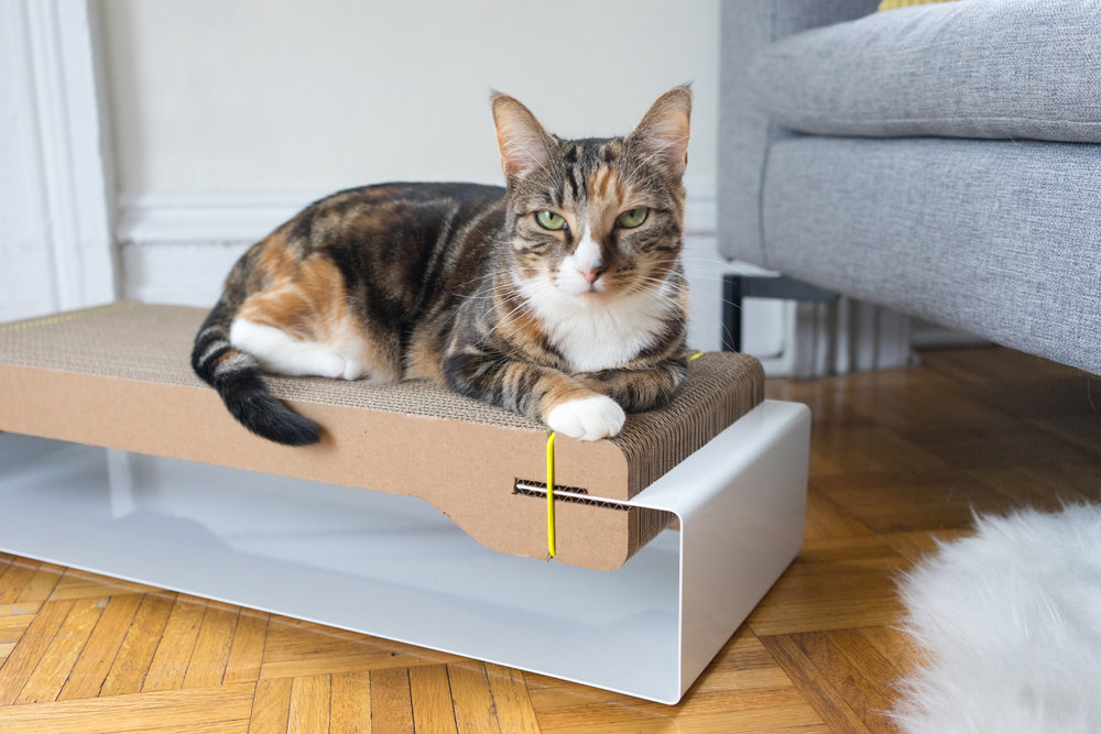The Corr Lounge on the other hand is a more conventional cardboard scratchboard but one that has been elevated aesthetically and reimagined to deliver a much more attractive product that you and your cat are both sure to appreciate. With clean lines, a simple design, and a pop of colour, The Corr Lounge is the ideal cardboard scratcher for any contemporary home and just because its made of cheap materials doesn’t mean it has to look cheap.