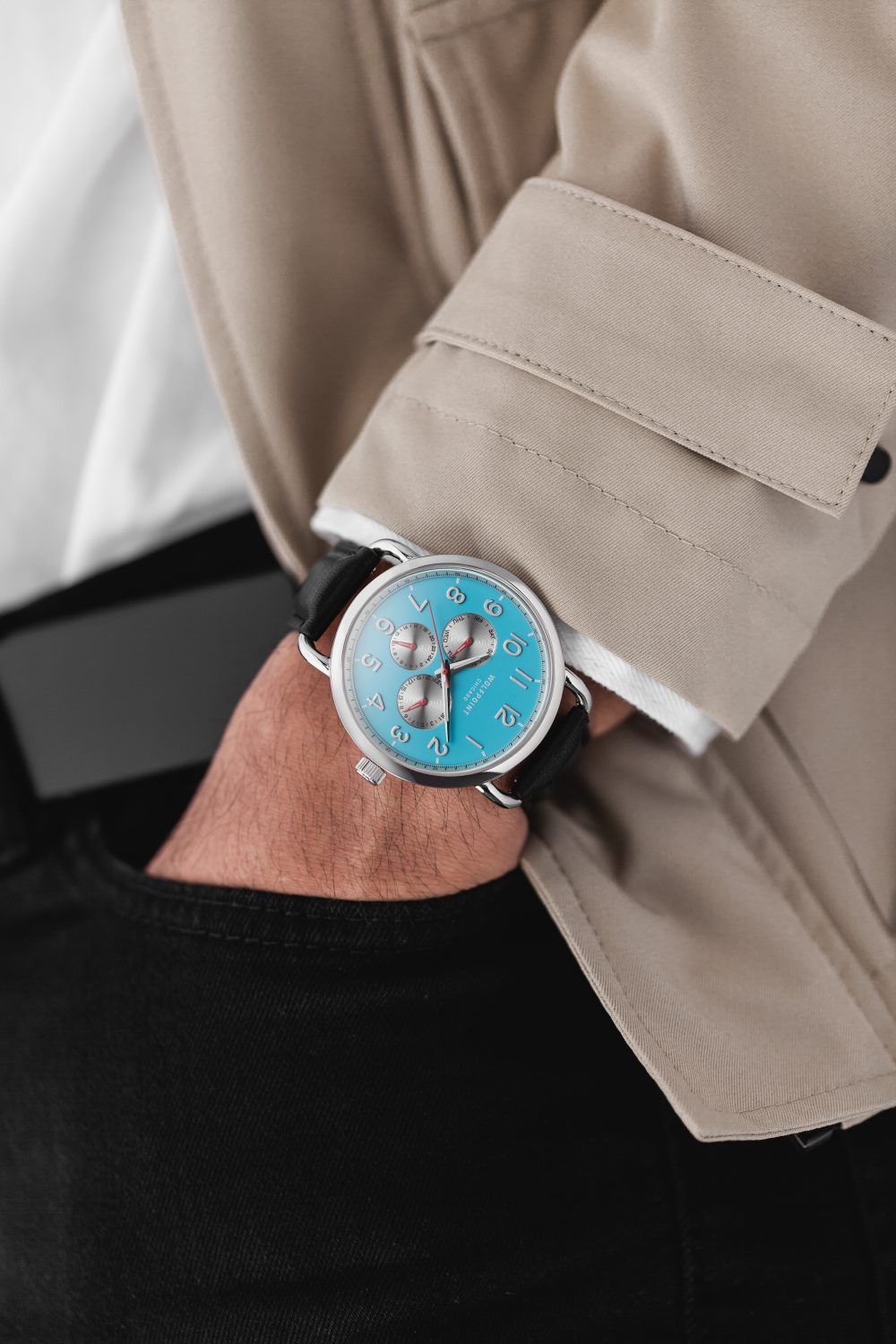 Each one of these Wolfpoint Fort Dearborn Watches has been meticulously engineered for quality and style and excels in both areas. This contemporary timepiece offers both precision and character for your wrist for under $200 which, in our opinion, is nothing short of miraculous. This glorious and devilishly dapper timepiece showcases bold features, which includes a polished enamel dial with three contrasting subdials and the coveted day-date indicator—driven by the classic Japanese-made quartz movement, the Miyota 6P29.