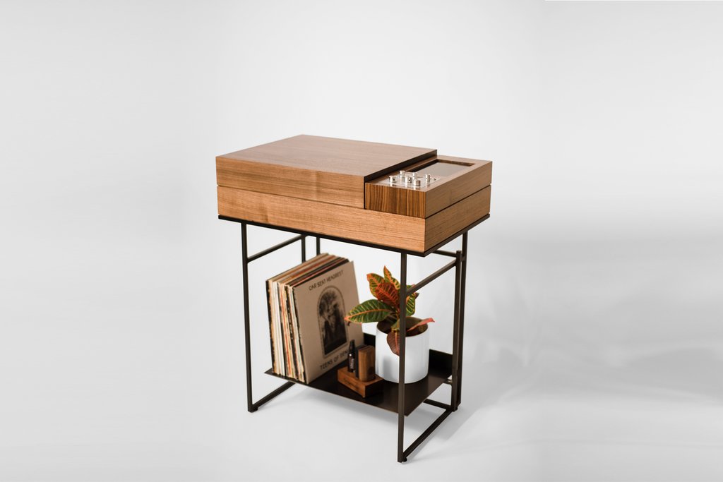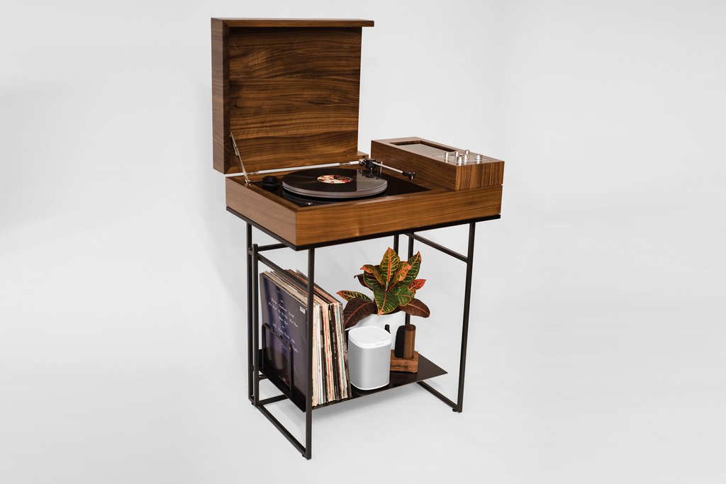 Designed with fans of Sonos in mind, the immeasurably cool and striking Loft Sonos Edition Console from Wrensilva simplifies the analog + digital audio experience by joining them together into one highly functional and impeccable sounding unit. It is available in solid North American Walnut hardwood with choice of white or black gloss acrylic details with a welded steel base with shelf for storage of up to 120 vinyl records.