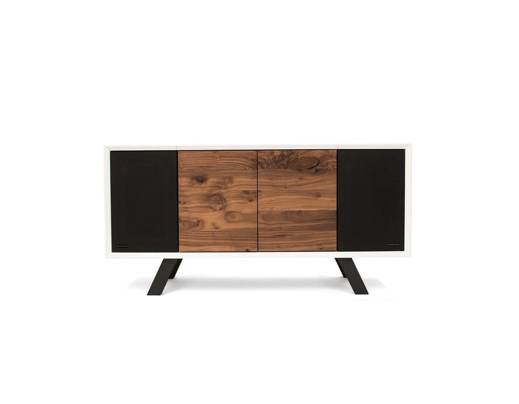 The first thing that stands out with the design of the Wrensilva Sonos Edition Console is the integrated turntable which has a 1 1/8″ constrained layer, split plinth construction and a Hurst 24v AC synchronous motor for a reliable performance – making this a vinyl lovers dream. The craftsmanship of the console itself is, as you would expect from Wrensilva, second to none and made from North American Walnut and white lacquer for a bold visual impact. With space for 120 records below the turntable, even a lofty vinyl collection will fit in this console and the LED lighted upper wood deck adds a nice finishing touch aesthetically.
