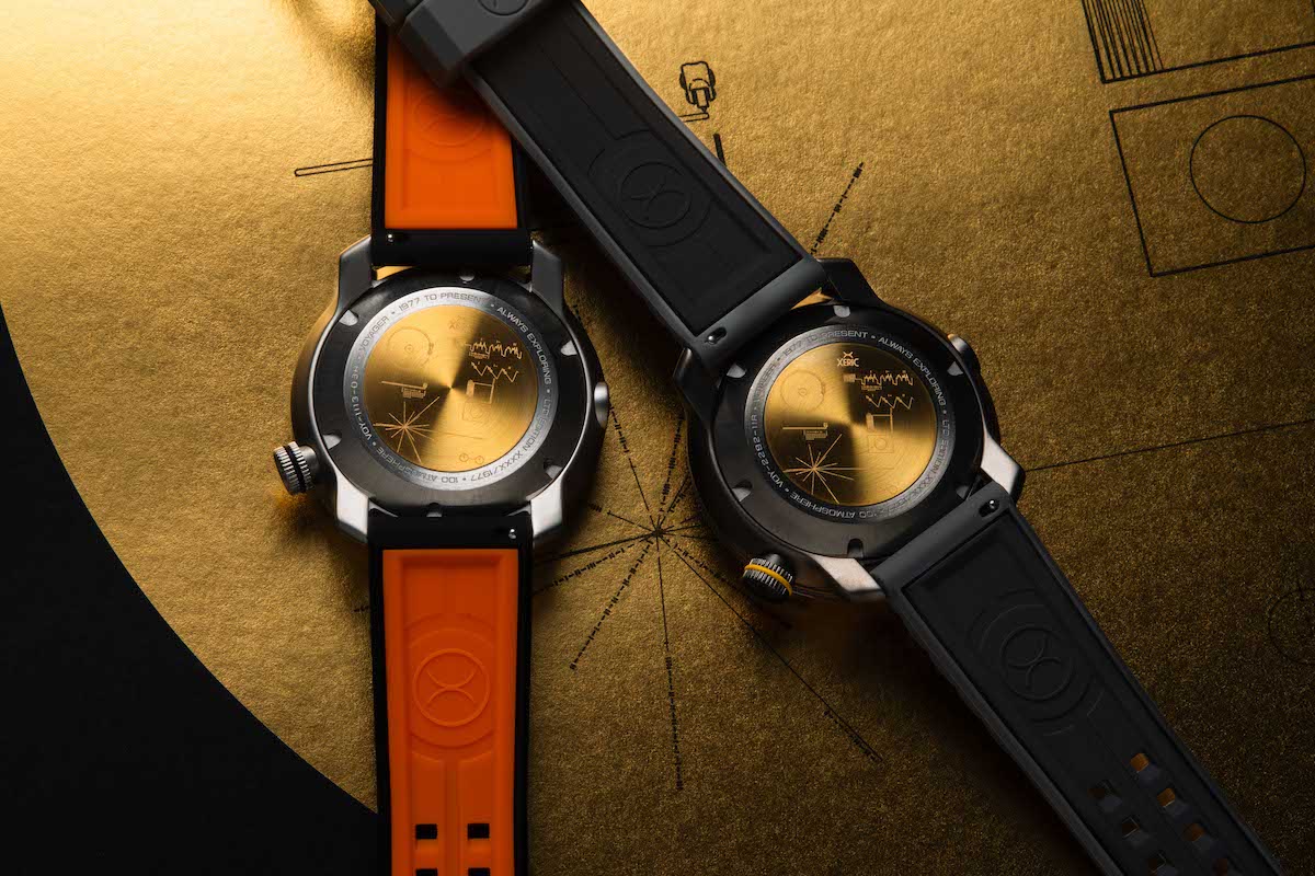 The movement is housed in a robust stainless steel case complete with a tactile 120-click rotating bezel fit for divers. The caseback of this space-inspired timepiece boasts an inlaid replica of “the Golden Record” cover which is found on the outside of the Voyager spacecraft, intended to communicate a story of our world to any intelligent life it could encounter in its journey. Made to withstand extreme conditions, the Voyager Automatic watch from Xeric will be your constant companion as you explore your world. Reserve your watch now, as each colorway is limited to just 1977 pieces, commemorating the year the Voyager spacecraft left Earth and began its iconic mission through space.