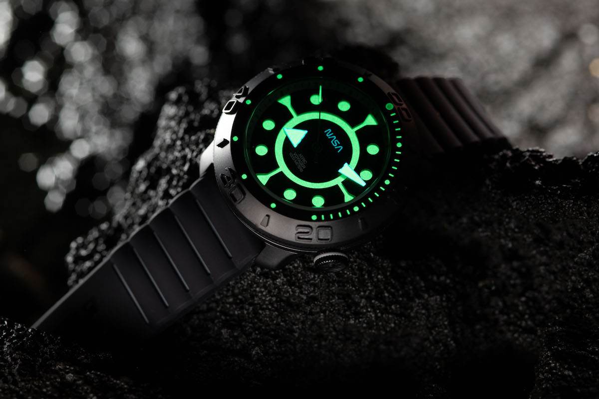 Available for the excellent pre-order price of just $389 which is 35% off the final retail price, the Xeric NASA Automatic Watch on Kickstarter is fantastic value for money right now. This limited edition timepiece is designed to remind us of the importance of space exploration and whether it’s deep in the ocean or deep in space, this no-nonsense watch can withstand 100 times the pressure of Earth’s atmosphere. With this 1,000 meter depth rating, Xeric have also integrated a helium escape valve into the case, preventing a pressure differential that can occur during deep dives.