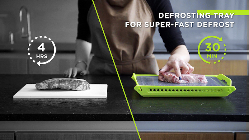 Doing away with all the guess work that most people engage in when trying to quicken up the defrosting process such as defrosting things in the microwave which actually causes more problems than it solves. When you defrost foods in the microwave, some parts may defrost while others don’t. In addition you could also get certain bits of the meats which are defrosting too close to cooking temperatures, which can be dangerous to one’s health. With the Yeti Touch Defrosting Tray you get all the speed with none of the health risks.