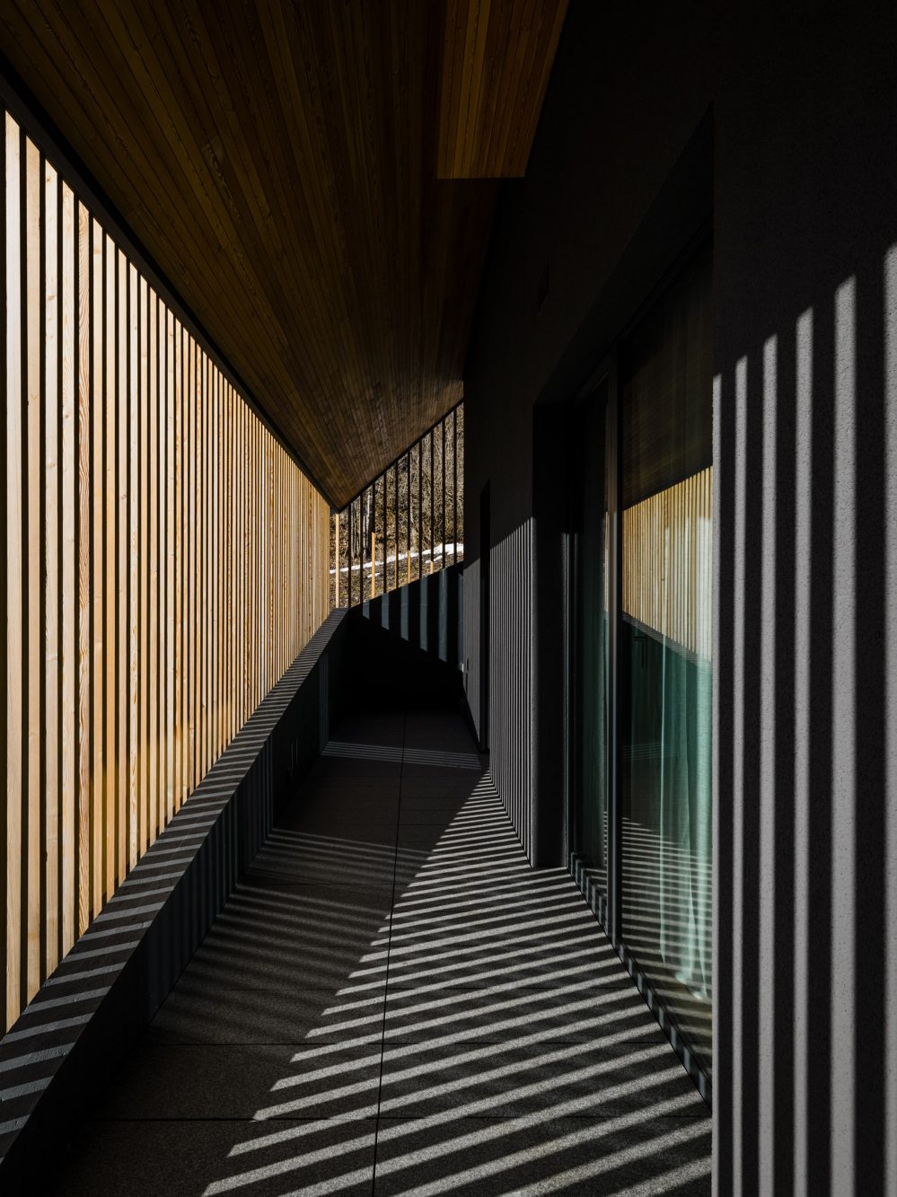 With the larch slats that surround both of the house’s volumes in order to prevent too much sunlight reaching the large sections of glazing behind, as well as providing privacy, it’s clear to see that the Geza Architecture Studio have been clever in how they’ve chosen the materials for this magnificent looking property. The wooden blades have different orientations and are sometimes rotated, which means the spacing within is not always constant. They open up to both hide and let you see and this is a super cool design feature that makes Z House stand out from the crowd.