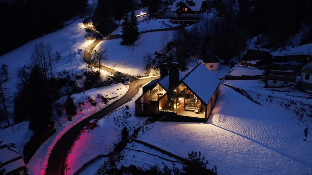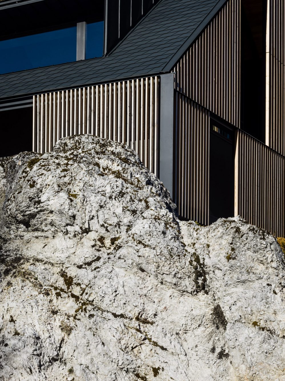 Z House’s two gabled forms are eye-catching in the extreme and step down the hillside, with the entrance, master bedroom and living space to be found in the higher volume of the two. There are additional bedrooms, a sauna and wellness area occupying the lower volume and this serves as the perfect spot for the owners to relax and unwind before enjoying the mesmerising views above. The gables overhang the property to provide protected terraces at the ends and along the sides of Z House which allow for al-fresco dining on warmer days.
