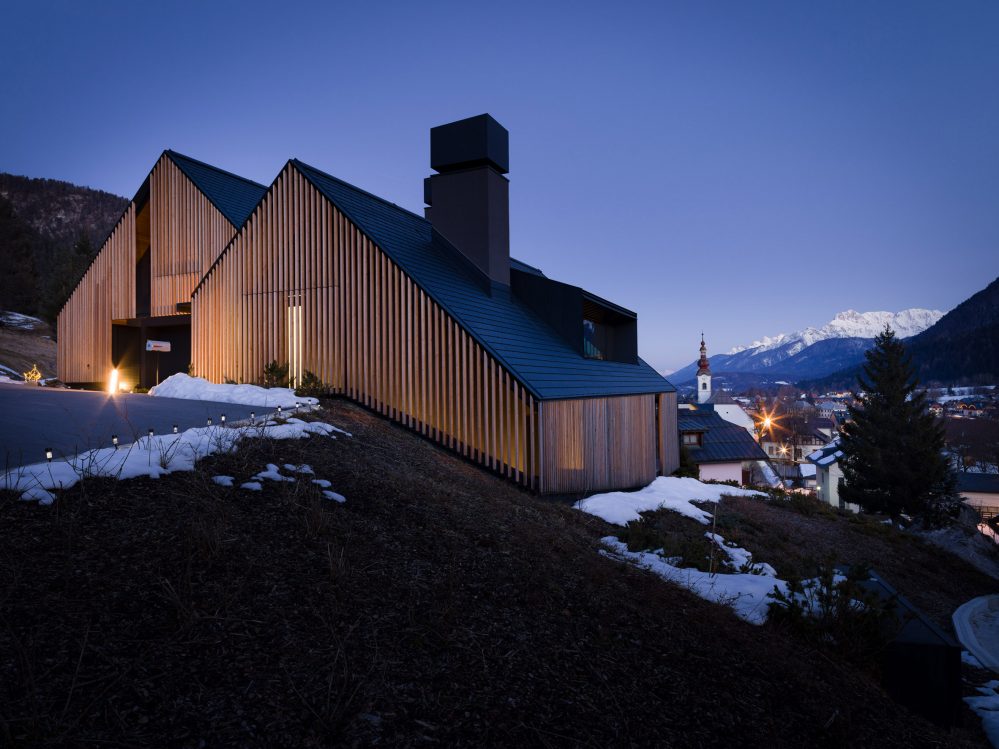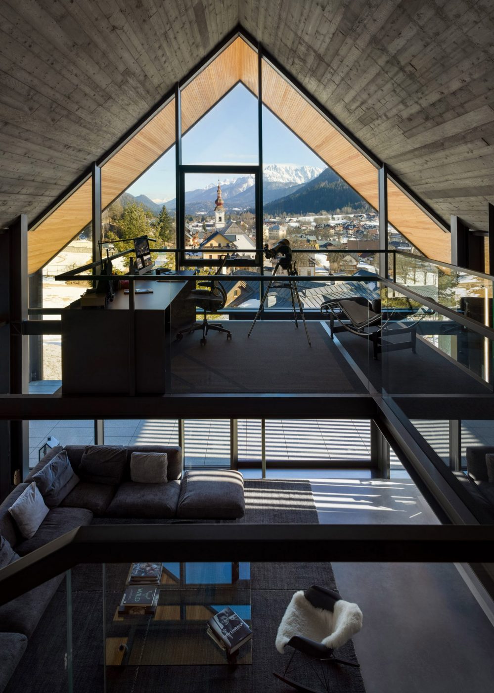 The Z House from Geza can be found close to a small town in Camporosso on the Italian Alpine slopes and it has been carefully designed to make sure the owners of the property are afforded the best views possible of their uniquely situated plot. The architects have wrapped a skin of sun-shading angled larch slats around this large gabled house to give it a wonderfully luxurious and modern feel but it is still very much in keeping with its surroundings from an aesthetic point of view.