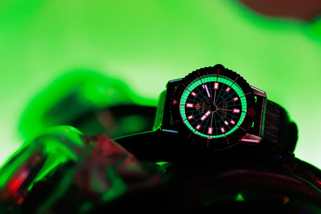 The watches boast eye-catching photoreactive elements on the dial, bezel, strap, and even the case and packaging. They took over two years to make and that’s something that is entirely evident in the excellence of the finished product. These classy timepieces are unlike any you’ve ever encountered before and a bit of a departure from the more understated watches Zodiac typically produce. The only question is, which side will you choose: Ultraviolet or Infrared?